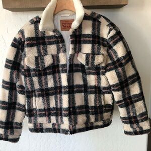 Levi’s|Ex boyfriend plaid Sherpa trucker jacket with collar•••Size medium,Cute!