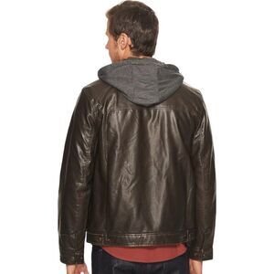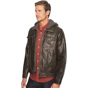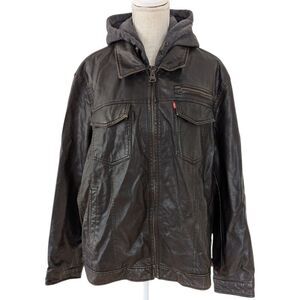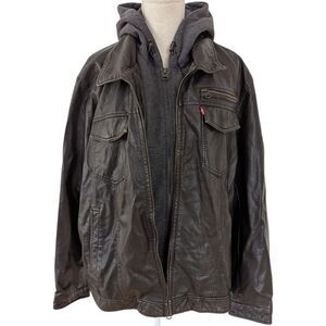 Levi's Faux-Leather Trucker with Jersey Hood & Fleece Lining Dark Brown Mens XXL