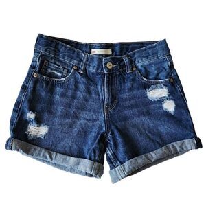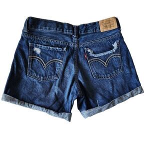 Levis Girl's Shorty Short Denim Shorts Size 16 Inseam 4" Flat lay Waist 14" Cuffed Distressed Excellent Pre-owned Condition