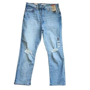 Levis Jeans Wedgie High Rise Straight Womens 14 Short Distressed Light Wash
