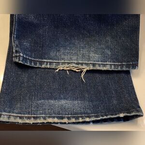 Slightly distressed at the hem. Other than that, no rips, holes or stains.