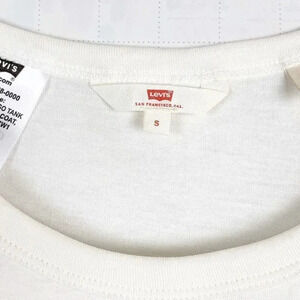 Levi’s Logo Graphic Tank Top Beige Red Stripe Size S Small 100% Cotton