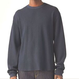 Stay stylish and comfortable with this Levi's men's blue thermal sweater. Size L measures 44 at chest, 44 at bottom hem. 29 long from shoulder to hem. Sleeves 26.5 long. Warm and durable. Perfect for any casual occasion.