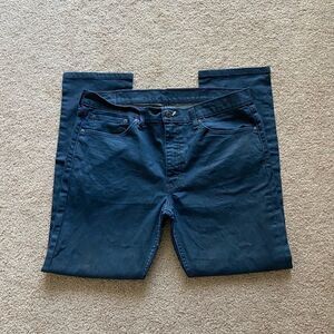 Dark blue denim jeans from Levi’s. Style is 511 slim fit. In good condition but the flaws are pictured - black discoloration in the front but not too noticeable since the denim is darker. No trades.