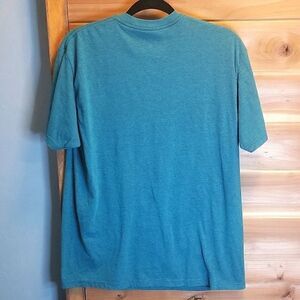 Teal color, fun graphic print, crewneck, short sleeves, classic fit. Great condition! Materials: 50%Cotton 50%Polyester Size Large