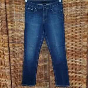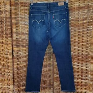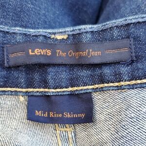 This is a pair of Levi's mid-rise skinny jeans. They have 5 pockets and a zippered fly.