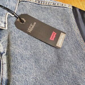 Levi's Premium Sherpa Bomber Jacket Small S Medium Wash Navy Satin 90s Vintage