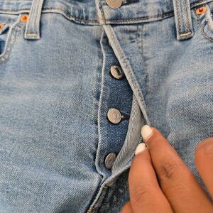 Levi's Ribcage Ankle Jeans Women's 29 Blue Denim Distressed Button Fly Straight