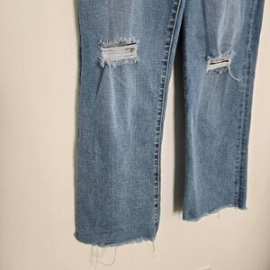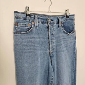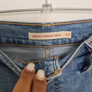 Levi's, Modern, Straight, Denim, Cotton Blend, Frayed Hem, 5-Pockets Design, Mid Rise, Formal, Fall, Winter, Summer, Spring, Levi's Ribcage Ankle Jeans Women's 29 Blue Denim Distressed Button Fly Straight.