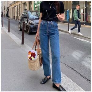 Levi’s Ribcage straight blue jeans W26 L27 button fly very cute