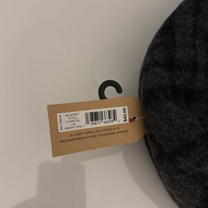This is brand new with tags, never used or worn. The color is black and gray. The size is large/xl. The circumference is about 24 inches. Fleece lined and faux sherpa fur. The fabric is 100 % polyester.