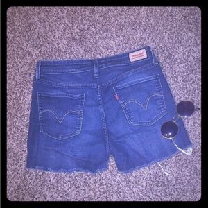 Vintage Levi Mid-Rise Skinny shorts Size 0-2 Waist in inches: 34 in Dark wash blue denim with a little bit of stretch! #0005