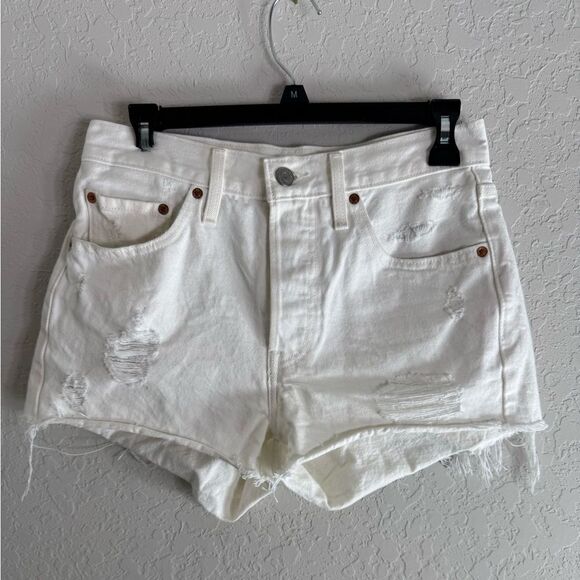 Levi's Women's 501 White Raw Hem Distressed Jean Shorts Size 26