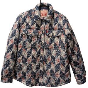 Levi's Women's XS Diamond Quilted Lightweight Shirt Jacket Blue Diamond Print