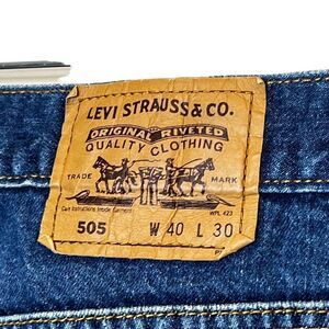 Levi’s vintage 505 orange tab jeans size 40 X 30. 100% cotton. Medium wash. Very good condition. Waist 18.5” Rise 13” Inseam 30”.