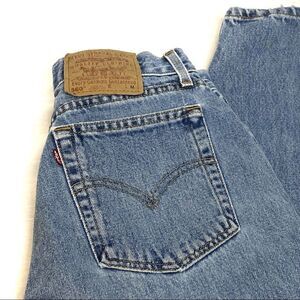 Levi’s vintage 560 loose fit straight leg high waist mom jeans size 10. Light wash. Wedge fit. 100% cotton. Very good condition. Waist 14.5” Rise 12” Inseam 31”.