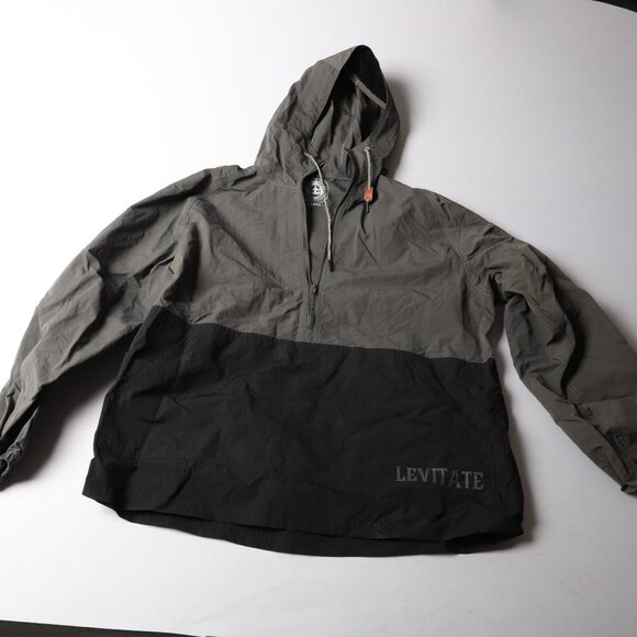 Size Large Men's Levitate windbreaker water resistant nylon shell. Excellent condition from smoke free pet free home. Black and camo green.