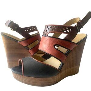 Levity Color Block Laser Cut Platform Wedge Sandals Women's Size 7M