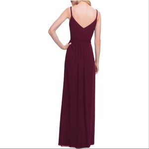 Levkoff Chiffon A Line gown in Style 7052N Wine color ( wine77) size 2. New with tags, no flaws. Sweetheart neckline with V back, hidden back zip, fully lined, strapless ( not adjustable) Measurements are approximates only.