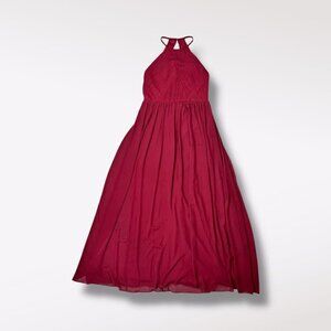 #Levkoff Chiffon Halter Dress Maxi Evening Gown Size 8