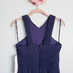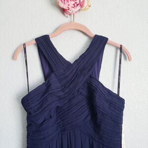 Levkoff Crisscross Neck Chiffon A-line Navy Gown
