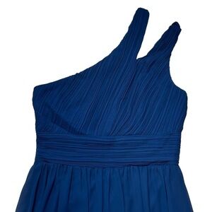 In great condition •Levkoff •Navy Blue •Chiffon •Lined •Back Zipper •One Shoulder •Wide Strap •Bridesmaid •Prom •Military Ball •Formal •Wedding Guest