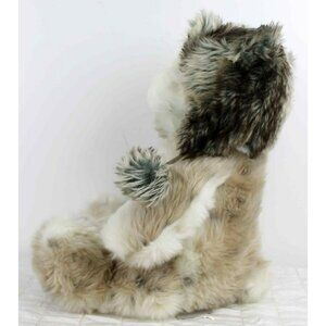 Levtex Baby Bear Plush Bomber Hat Snow Grizzly White Grey 14" tall
