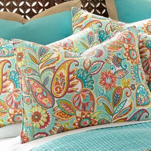 The Palisades Reversible Quilt Set by Levtex Home is inspired by bright woven scarves and tapestries. Offered in shades of multicolor, this design will immediately transform your bedroom. Made with the softest lightweight cotton, this reversible quilt features a bright and bold paisley print on the one side, reversing to a teal zig-zag stripe on the other. The Quilt Set has a cotton rich filler (90% cotton, 7% rayon, 3% other fibers) and is machine washable. Enjoy this for years to come!