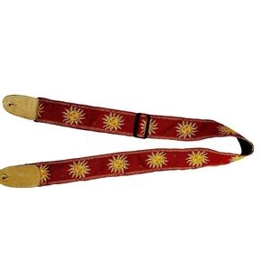 Levy’s MPJG Vintage Sun Guitar Strap 1960’s Red Jacquard Gold Sun with Tan Suede Ends and Black Leather Backing Adjustable Length Sad Sun Retro 1970's BOHO Bohemian Guitarist Musician Band Hippie
