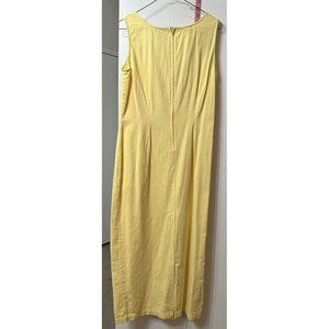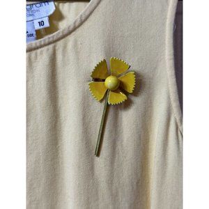 Lew Magram Vintage Sleeveless Solid Yellow Maxi Shift Dress Flower Brooch 10
