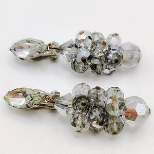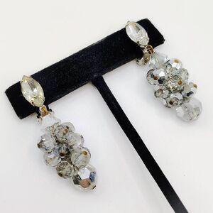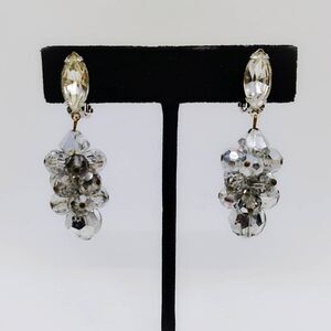 Lewis Segal Clustered AB Rhinestone Drop Dangle Clip-on Earrings Silver-tone OS