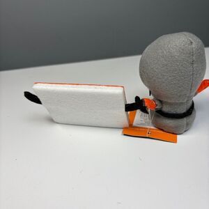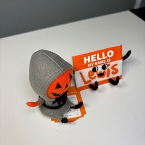 Cute Halloween felt duo with a gray and orange design. Features Lewis the jack-o'-lantern face and a playful name tag.