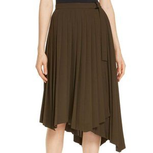 Lewit Asymmetrical Pleat A-Line Skirt Olive Sz 2