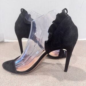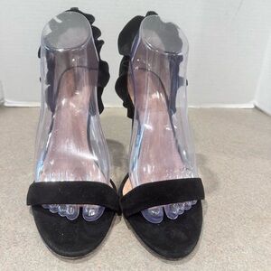 Lewit Black Ruffle Regina Heels Made In Italy 39.5 US 9.5 Open Toe Pumps