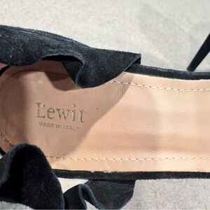 Lewit leather heels with ruffle detail to upper heel adds a touch of elegance. Slip on style. Suede uppers and cushioned leather footbed. 3.5” heel. Great for wearing to the office and then to night out. Very versatile.