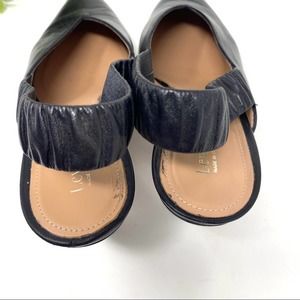 Lewit Black Soft Leather Tan Pointed Toe Sling Back Heels
