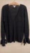 Lewit Black Sparkle Angora Mohair Blend V-Neck Sweater Tie Cuff Womens Small