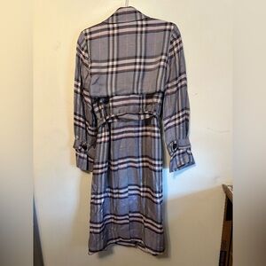 Lewit Bold Plaid Trench Coat Navy Night Harper Plaid Size Small Long Preppy