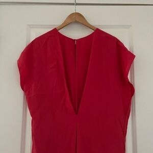 Lewit Center Pleat Cap-Sleeve Georgette Silk Shift Dress