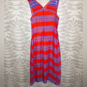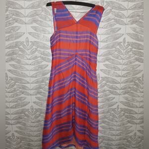 Lewit Dress Midi V Neck Silk Sunset Stripes