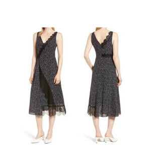 Lewit Lace Trim Silk Midi Dress navy night jane print Size 6 Feminine Retro Boho