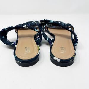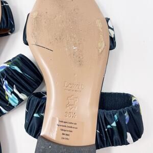 Lewit Size 36.5 Navy Blue Elena Floral Square Toe Sandals Satin Slide Ruched 6.5