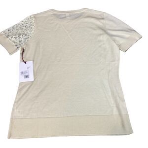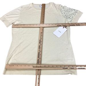 Lewit Sweater Womens 1 Beige Merino Wool Lace Short Sleeve Crew Neck Pullover.