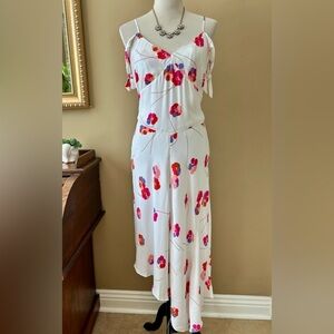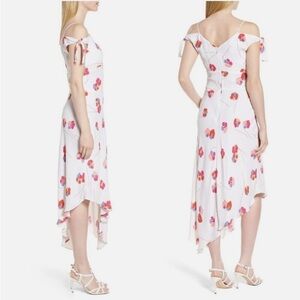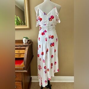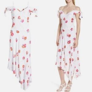 Lewit Tie Sleeve Off Shoulder Floral Asymmetrical Maxi Dress White Pink Size 8