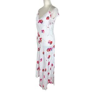 Lewit White Floral Carla Dress Tie Sleeve Asymmetrical Cold Shoulder Size 8 NEW