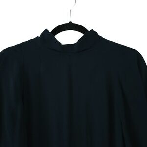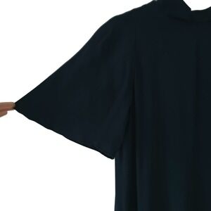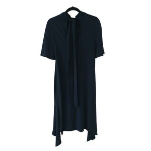 Lewit Womens Midi Dress 4 Dark Navy Blue Shift Short Sleeve Mock Neck Asymmetric
