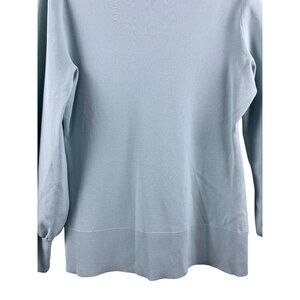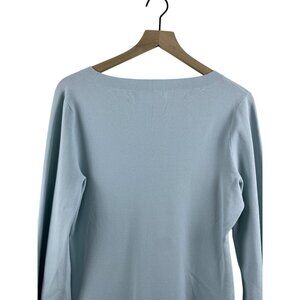 Lewit Women's Size Large Stretch Knit Balloon Bishop Sleeve V Neck Sweater Blue
