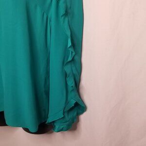 statement sleeves with cascading ruffle bring just the right amount of frill to v neck flowy silk teal sea colored new without tags