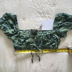 Super cute two piece outfit. Includes a stylish crop top featuring a faux tie in front that can be worn off the shoulder or on—and high-waisted pants with an elastic waistband, adjustable tie front, and pockets.