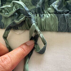 7th photo shows a slight fray on the faux tie on the top, which is barely noticeable when worn.